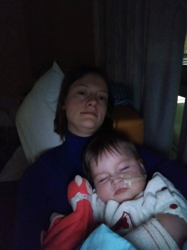 Gelukkig valt ze uiteindelijk een half uurtje later in slaap, ze slaapt een uurtje en wordt dan weer even ontroostbaar wakker als ervoor. Ik besluit dan maar weer de verpleging er bij te halen, normaal vind ik het in ieder geval niet. Ze geven haar de aangepaste versie van haar chloralhydraat (op waterbasis in plaats van siroop) en oef na een paar minuutjes is ze vertrokken naar droompjesland, zelfs terwijl de verpleegster nog wat uitleg geeft over de voedingspomp.